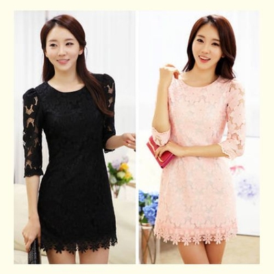 面試穿搭很重要-Bubble-CoCo韓版氣質優雅花朵蕾絲修身七分袖洋裝DS79(現+預) 好用