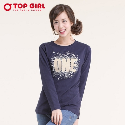 面試穿搭很重要-TOP GIRL新品8折-燙金ONE ONE圓領長Tee(深海藍) 評價