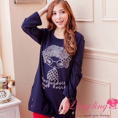 面試穿搭很重要-lingling中大尺碼 毛線娃娃側口袋微厚棉T上衣(休閒藍)A1949-2 開箱文