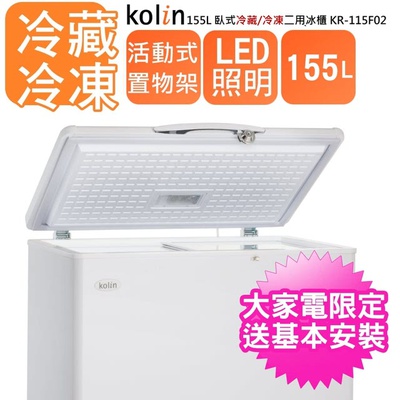 年終! 最新版搶先購!【KOLIN 歌林】155L 臥式 冷藏-冷凍 二用冰櫃 KR-115F02(基本運送- 送 折箱定位)熱賣中!