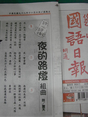 夜的路燈組曲 -----98年11月6日刊登於國語日報少年文藝版