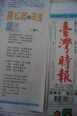 蒲公英的天空---99年4月10日刊登於台灣時報「副刊」