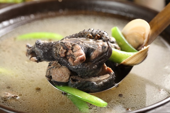 源自於泰雅族人口中的「馬告」,即為一般人稱的山胡椒,置入湯中與黑亮的烏骨雞一併燉煮,湯頭溫醇滑順,肉質鮮嫩不乾柴,強身補氣,可謂湯中極品。