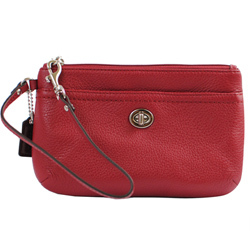 COACH 質感全皮革旋釦扣環手拿包.暗紅