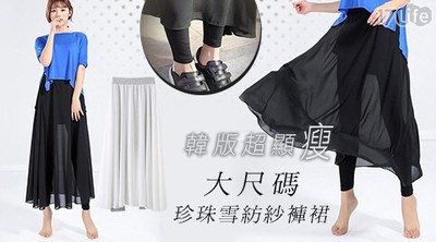 【新款家電優惠中】韓版超顯瘦大尺碼珍珠雪紡紗褲裙 團購折價卷