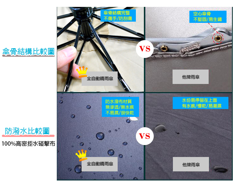 4.超強抗水技術,雨水落在傘面只會形成水珠,一甩即乾.