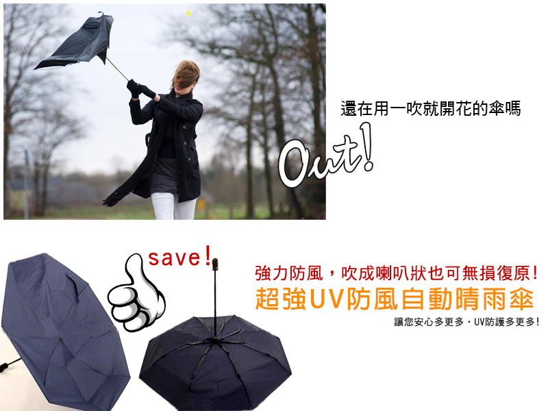 全新超強UV防風全自動晴雨傘,獨家防風防潑水設計!