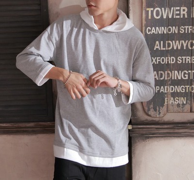 美式休閒假兩件配色帽T(灰色) 202 的產品介紹在下面,
