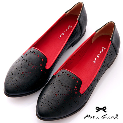 Mori girl手作民族風-雕花圖小尖頭樂福鞋-黑界中掀起一股熱潮,