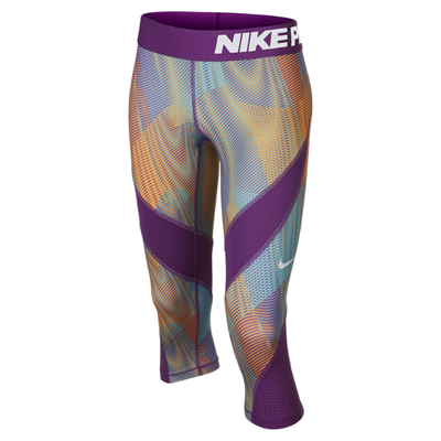 Nike Pro HyperCool 大童 (女童) 印花訓練七分褲是採緊身的彈性材質製成,可讓人在自然暢動的同時,享有穩固包覆的感受。透氣網布可在訓練時保持空氣流通。