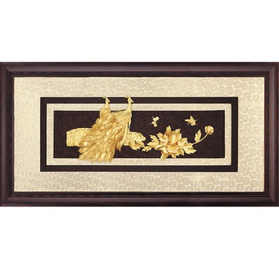 【開運陶源】純金-高昇系列-牡丹孔雀花開富貴...81x42cm
