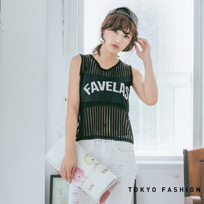 東京著衣 字母條紋透膚紗背心(共二色)CP值超高的,快來揪同事團購囉^^