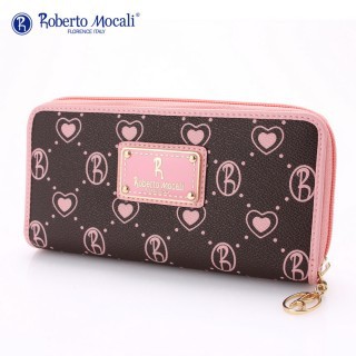 【Roberto Mocali 諾貝兔】桃心浪漫魅力拉鍊扣式長皮夾(桃心系列)