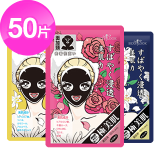【SEXYLOOK】嫩白水潤保濕純棉黑頸顏面膜組(50片)