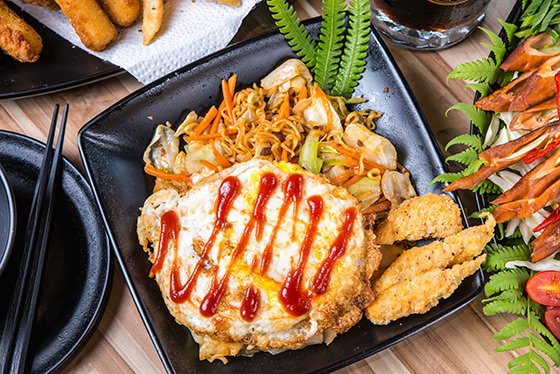 吃過會比大拇指的熱門菜色!不同於油麵的普通版炒麵,選用蒸煮麵不易軟爛也不油膩,香油拌炒好香好有口感,一口氣吸進一大口發出呼嚕呼嚕聲,有夠爽快!