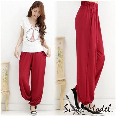 【名模衣櫃】快速到貨-運動甜心 馬卡龍冰絲涼爽褲-束口(紅-適穿M-XL)