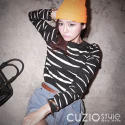 【CUZIO】雜誌款復古斑馬紋長袖毛衣針織衫