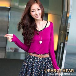 【OrangeBear】V領挖肩造型長版棉質上衣 肩領上挖洞的變化設計,