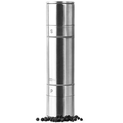 How 使用方式:本商品一件入。將鹽罐與胡椒罐節省空間般的堆疊起來,分放上下不同的空間。研磨器為陶瓷刀片,保留香料原味,而不殘留金屬異味。瓶底可調整研磨粗細。不鏽鋼的調味瓶罐,給您都會俐落感的新選擇。