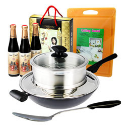 《廚房3大法寶》COOKKING萬用晶鑽鍋+黑松露風味醬油3瓶+抗菌防滑砧板