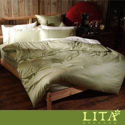LITA麗塔(Magic Colors-玄米綠)雙人四件式純棉薄被套床包組