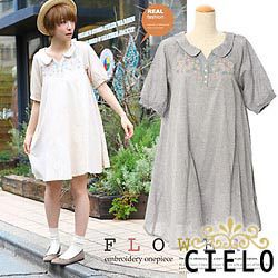 【日本CIELO】俏甜佳人棉麻混紡花序梗刺繡連身洋裝(共三色)