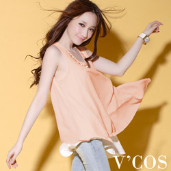 【V’cos】流線蔓延‧胸前寶石串珠斜擺背心(甜心粉) V’COS SPRING美麗就是競爭力 |