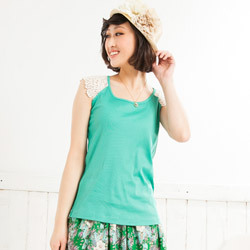 F.F.F,雪霸休閒農場住宿劵.】微露膚‧肩背部蕾絲剪接無袖上衣─四色