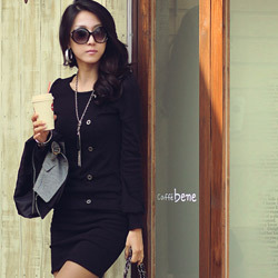 【N.C21】側排釦喇叭袖連身裙 (共二色) ☆韓國最夯OL品牌引進 ☆獨特剪裁非一般國內品牌可比擬 ☆款式簡潔讓您品味出眾