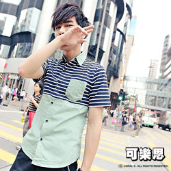 【可樂思】半橫紋單口袋短袖休閒襯衫-共三色,衣芙日系 品質