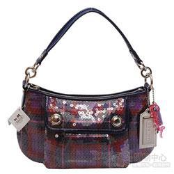 COACH POPPY系列 雙釦裝飾亮片紫格紋二用手提/斜背包 |