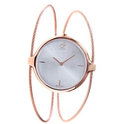 cK Agile 摩登線型玫瑰金華麗腕錶-銀白/38mm