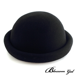 Blossom Gal韓版毛呢純色圓頂帽(高貴黑)