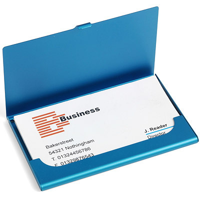 《VOYAGER》超輕薄名片盒(藍) 此款名片盒外型簡約俐落,金屬霧面鋁質,超輕薄只有15g、厚度也只有0.5cm,您可輕巧的放於襯衫口袋,絕不造成負擔,大窩口木醋液。以簡易的扣闔方式收納,橫式開啟,呈現出歐洲經典的簡約美學。 |