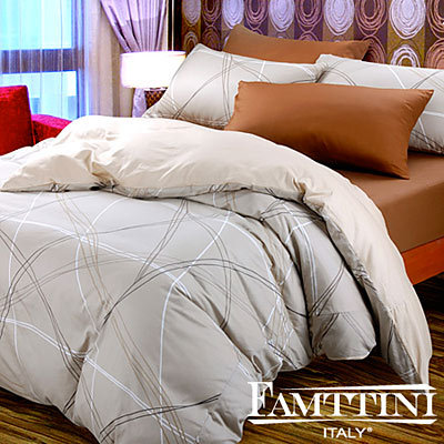 【Famttini-率性律動.米】雙人精梳棉六件式被套床包組 |