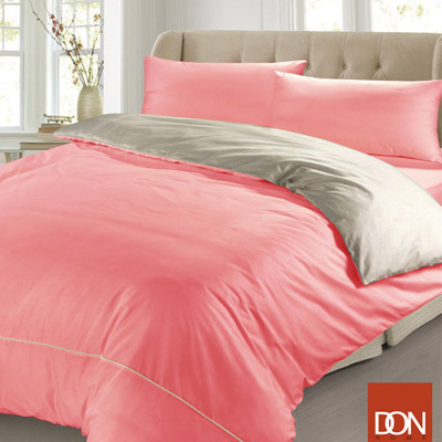 《DON─原色時尚》特大精梳純棉被套床包組(俏麗桃+時尚灰)
