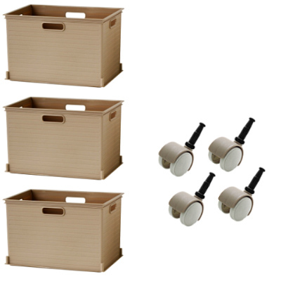 ■採用高級塑膠原料,堅固軔性高,更耐用! ■可隨意收納各類衣物、餐具、玩具、工具或雜物類! ■四邊皆有手提口,直放橫放都好提取! ■附輪組(1包4入)溜溜好便利,安裝簡易好便利!