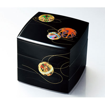 【Lafit】北市漆器【KT2044】彩光球花系列亮彩球花紋三段便當盒6.5(黑色)