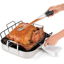 | 《CUISIPRO》好入味雙用醬料器 想烹煮出大廚手藝般的烤雞、醉雞或紅酒燉肉時,不免擔心時間短不入味,時間長又肉質老。此時如果您可使用此款好入味雙用醬料器,將醬汁注入管器內,利用擠壓的方式透過前端花灑器均勻讓醬汁佈滿食材表面;再換用細長不鏽鋼注針插入食材內,即可讓食材充分入味。可裝醬汁 40ml。醬料花灑與注針都由不鏽鋼製成,清潔更方便。