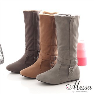 7net,7net購物網,7net雲端超商-Messa米莎 寒冬皮帶飾釦絨布內增高長靴-三色