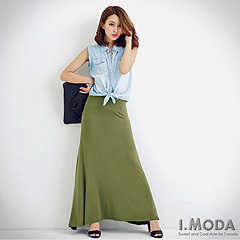 OB嚴選【春夏熱銷獨家當季58折】簡單百搭~素色彈性腰圍棉質長裙‧3色』