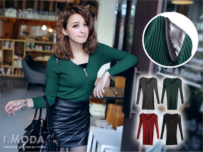 時尚概念~V領型拉鍊開襟肩皮革嚴選厚針織長版T?4色商品網址: http://ibanana.biz/redirect.php?k=667271c85613813f5dc6c6eacb943234&uid1=&uid2=&uid3=&uid4=&uid5=~~~這個~~~