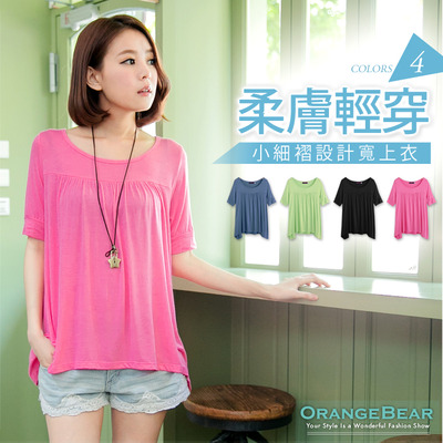 服裝推薦OB嚴選-0901新品 柔膚輕穿~圓領小細褶設計寬擺上衣-4色