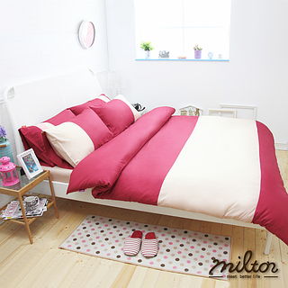 momo購物網-【MILTON】城市印象-純棉被套床包四件組(雙人)(熱情巴賽-野莓紅)_0