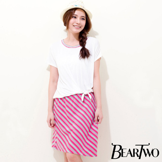 推薦momo流行服飾【BearTwo】活潑條紋配色縮腰綁帶洋裝(粉紅)