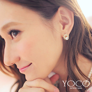 推薦momo流行服飾【YOCO】正韓花圈造型水鑽耳環