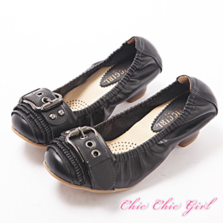 【CHIC CHIC GIRL】全真皮系列-圓頭流蘇皮帶扣飾2吋跟鞋(黑)商品訊息簡述: