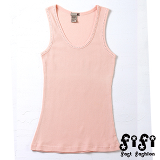 【FIFI飛時尚】U領燙鑽羅紋內搭背心(粉橘)
