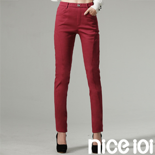 【niceioi】內磨毛高彈曲翹窄管褲(超細搖粒絨系列M-4XL暗紅)推薦分享
