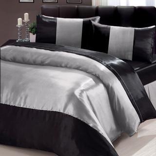 《樂活-時尚祕黑銀》雙人四件式絲緞被套床包組